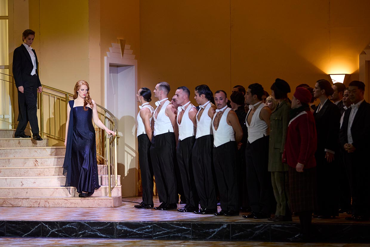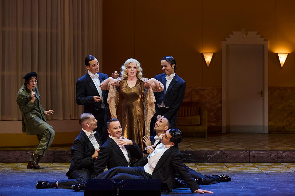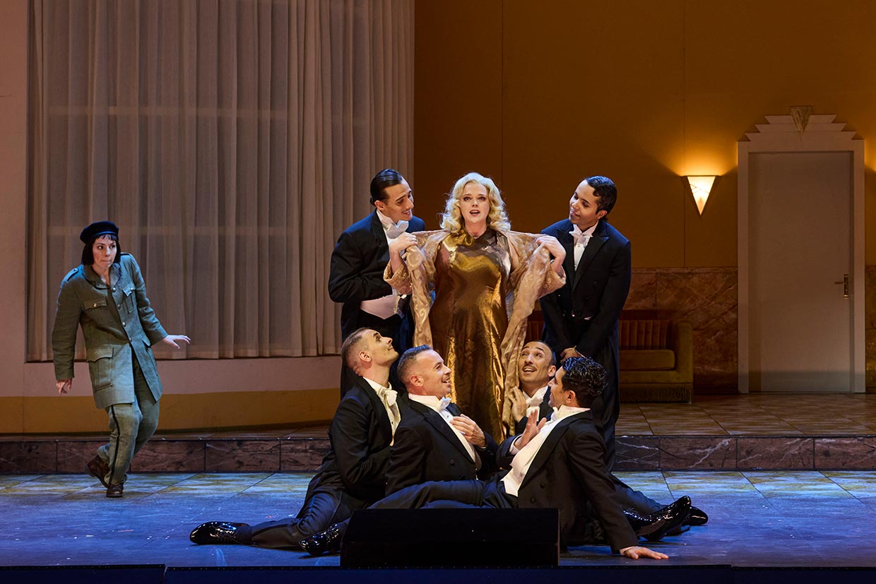 „Im Setting der Produktion im Staatstheater Nürnberg, einer Kooperation mit dem Theater Bonn, befinden wir uns in der deutschen Zwischenkriegszeit. Dass diese Markierungen mit Uniform- oder Ausstatungsdetails zwar eindeutig gesetzt, aber nie belehrend in den Vordergrund gerückt werden, ist eine der vielen Meriten der szenisch, wie musikalisch-sängerisch brillanten Aufführung. (...) Julia Grüter brilliert in der Titelrolle darstellerisch als Frau von Erfahrung, Welt und Eleganz, die mit allem rechnet, nur nicht mit ihren eigenen Gefühlen – denen sie stimmlich mit goldenem Feenstaub Glanz und verleiht. (...) Veronika Loy brilliert in der Rolle des Knaben – hier des Pagen – Oberto, der verzweifelt seinen (von Alcina längst in ein wildes Tier verzauberten) Vater sucht.“