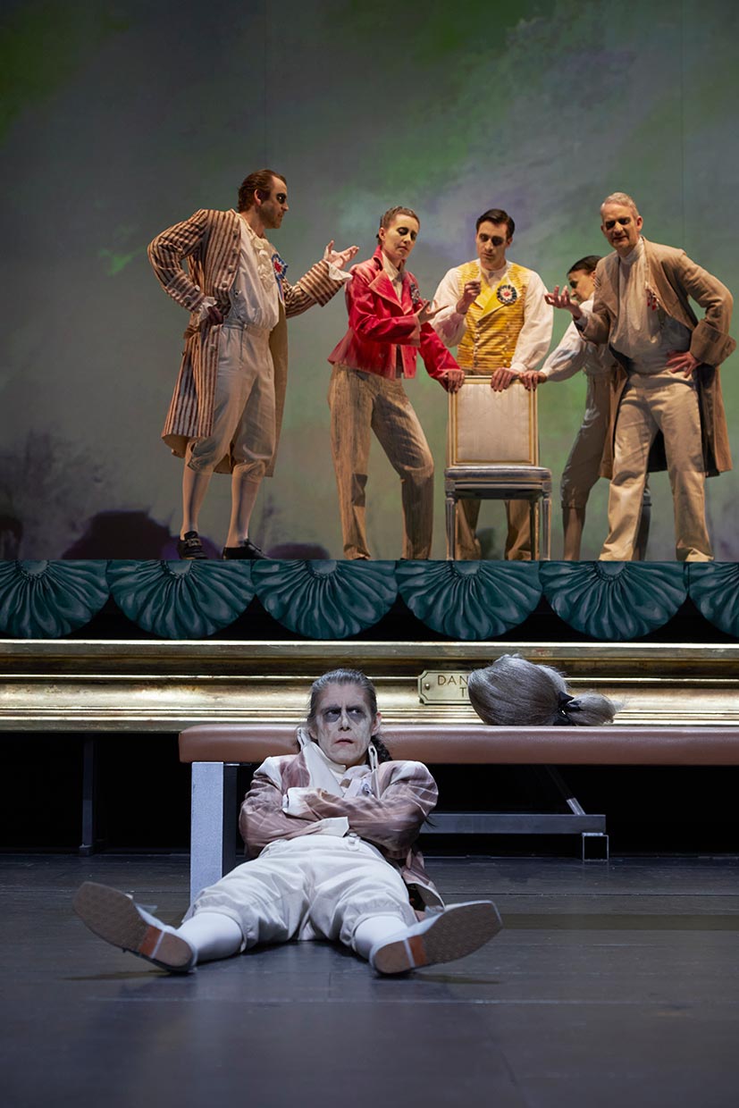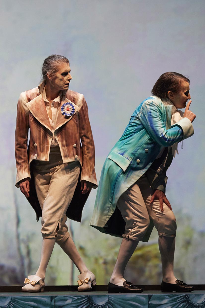 Liberty, equality, fraternity: This slogan from the French Revolution has not only made an indelible mark on history, but plays a critical role in shaping our concept of democracy to this day. Büchner’s drama looks at the other side of these three words. Just five years after the storming of the Bastille and the initial euphoria of the Revolution, the people are still starving as terror and despotism prevail, and the guillotine is in use day and night. Though revolutionaries Georges Danton and Maximilien de Robespierre once stood together for the values of the Enlightenment and the establishment of human rights, they now find themselves ensnared in a bitter fight for what they believe to be the proper form of governance. While Robespierre seeks to defend virtue at all costs, Danton can only take a disillusioned and fatalistic view of the unending dynamics of rule: “We are only puppets, our strings pulled by unknown forces.”