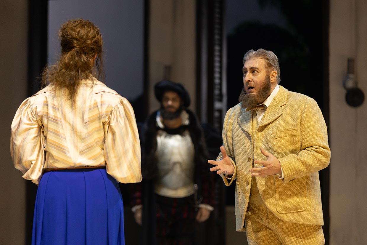 „Mary ist eine höchst beeindruckende schwarze Witwe. Sie heißt Almerija Delic, die kleine Rolle ist eine Wurzen, aber auch sie muss von einer erstklassigen Sängerin interpretiert werden. (…) Jochen Kupfer also spielt und singt den Mann, er macht’s als Bassbariton, was eher ungewöhnlich für Kupfer ist, und er macht’s mit noblem Klang und, bei aller äußeren Ruhe, mit (Vibrato!) dramatischer Anteilnahme. (…) Großer Beifall auch für ihn – und den Chor des Staatstheaters Nürnberg, der, so bizarr auch die Damen aussehen mögen, unter der Leitung von Tarmo Vaask wieder zeigt, wie ein Opernchor zu singen hat. Getragen wird das Alles von der Staatsphilharmonie Nürnberg, deren GMD Roland Böer sehr gut weiß, wie man das Orchesterschiff durch die akustischen Fährnisse des klanglich schwierigen Hauses zu führen hat, ohne die Tempi zu verhetzen, es mehr als nötig krachen zu lassen und sich auf Details auszuruhen, die man auch bei „normaler“ Geschwindigkeit gut hören kann, wenn die Stimmen sich nicht überlagern, sondern solistisch begleiten.“