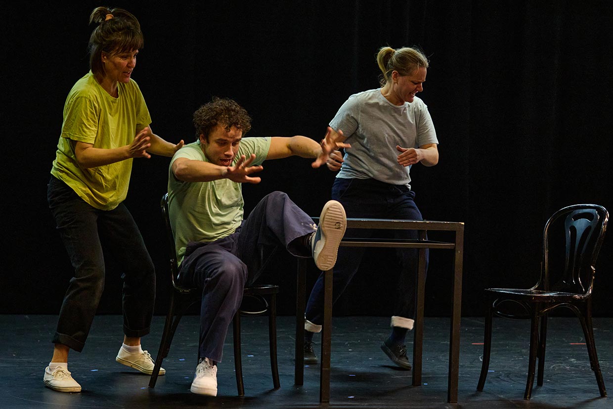 Yet what is it that makes a good theatre performance? Peter Brook said, “A person walks across a stage and another person watches.” We want to give that a shot. We’ll do away with all the bothersome accessories like a set narrative, a rehearsed plot, complicated props and costly set design. What remains is a group of actors who craft new stories and situations every evening, sometimes with audience participation, out of the full breadth of their experience and training so that they can add colour and vibrancy to the Kammerspiele stage. An unforgettable performance, spontaneous, entertaining, uproariously funny – and entirely unlike any other production in our repertoire.