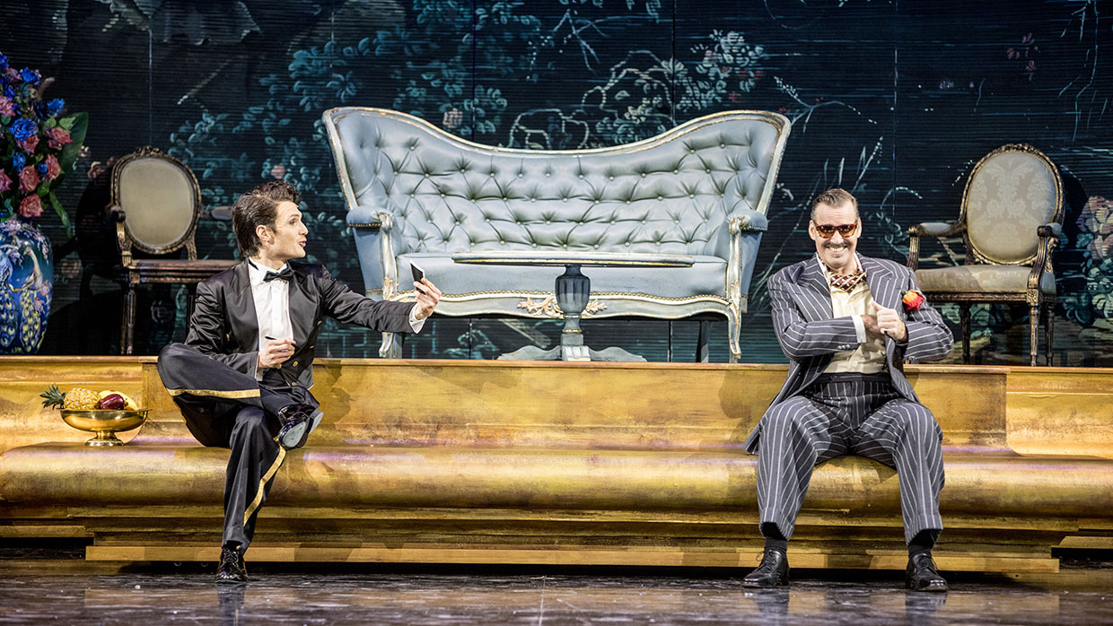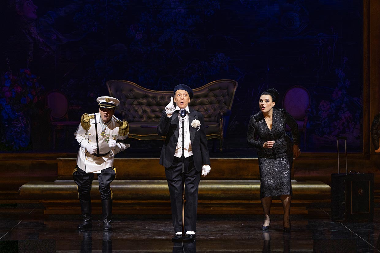It will take an exotic, erotic and risqué film to save producer Makintosh from bankruptcy. His daughter Marylou takes matters into her own hands and discovers that the Grand Hotel in southern France has not only the perfect story, but the stars as well: The exiled infanta Isabella, the supercilious Prince Andreas Stefan and the clumsy temporary waiter Albert are the main characters in a plot written by life itself. After this jazz operetta could only be given a limited showing due to the coronavirus pandemic in 2020, it is returning to the stage with all manner of hits, dance numbers and, of course, a “happy, happy, happy, happy end”.