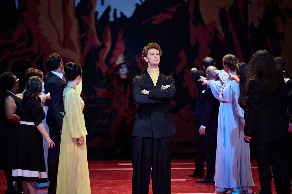 „Julia Grüter kann die lang ausgedehnten Phrasen wunderbar singen. Auch in den Ensembles: Tristan Blanchett ist ein hinreichend heldischer Max und Seokjun Kim ein dämonischer Kasper. GMD Roland Böer dirigiert das hinreißend. Das Orchester ist in Topform.“