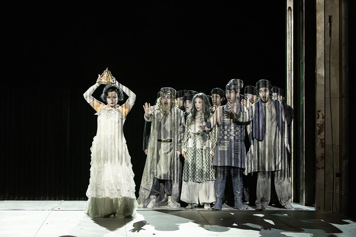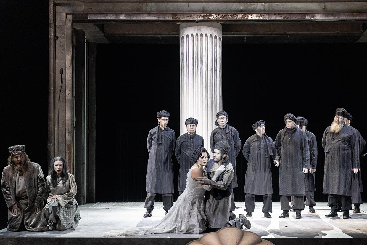 Nabucco war 1842 Verdis erster echter Erfolg. Er traf die Italiener mitten ins Herz, die sich nach der Befreiung aus der babylonischen Gefangenschaft Österreichs und des Vatikans sehnten – der Gefangenenchor „Va, pensiero“ ist bis heute die inoffizielle italienische Nationalhymne. Aber es war nicht nur der politische Kontext, der das Stück zum Klassiker machte. Verdi hat eine atemlose Handlung vertont, ein apokalyptisches Amalgam aus sich überstürzenden Ereignissen, unüberlegten Entscheidungen, wahnsinnigen Politikern, Fake News, religiösem Fanatismus und welterschütternden Liebesgefühlen. Eine Oper, die nie zur Ruhe kommt, eine Geschichte von Menschen, die nur Alles oder Nichts kennen und die mit alttestamentarischer Wucht triumphieren oder untergehen müssen.