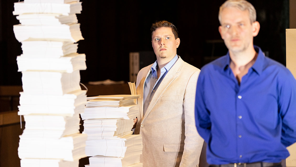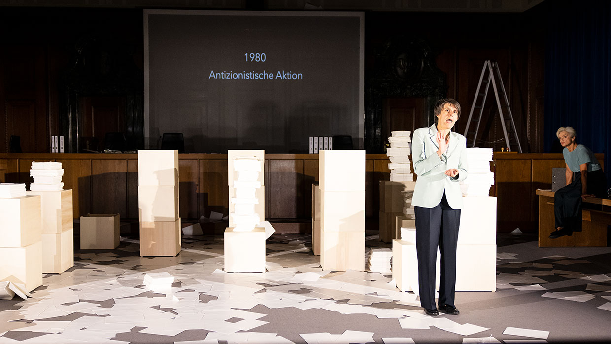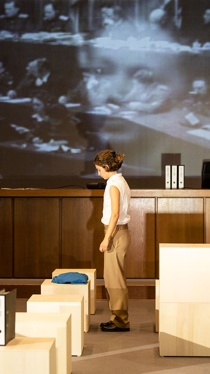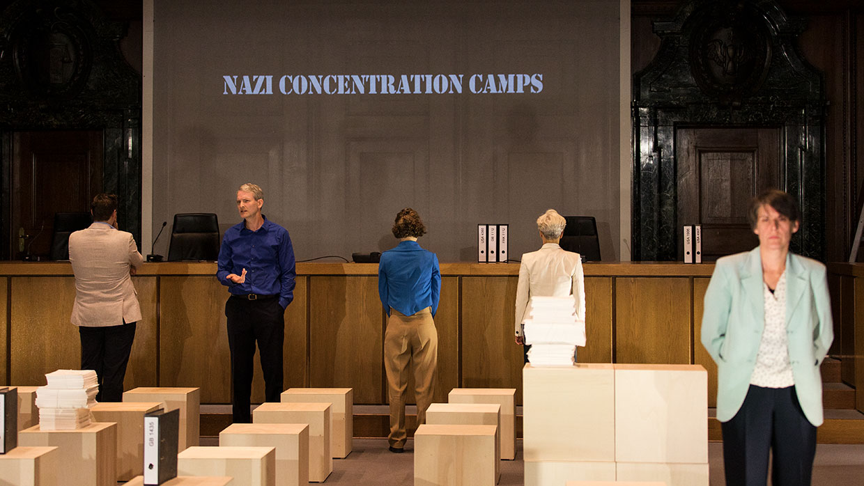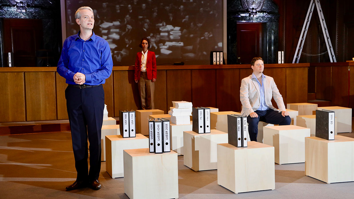 Am 30. September 2021 ist es 75 Jahre her, dass im Nürnberger Justizpalast die Urteile im ersten von dreizehn Prozessen gegen führende Nationalsozialisten verlesen wurden. Nicht nur Göring und die Hauptverantwortlichen, auch Ärzte, Industrielle, Juristen – ein ganzes System stand vor Gericht. Die Täter des Nationalsozialismus mussten sich hier in Nürnberg unter den Augen der Weltöffentlichkeit vor einem internationalen Gericht für „Verbrechen gegen die Menschlichkeit“ verantworten. Ein bis dahin einzigartiges Ereignis. Im Saal 600, dem historischen Ort der Prozesse, widmet sich nun eines der renommiertesten Dokumentartheater-Teams der Geburtsstunde des Völkerstrafrechts. Ein Theaterabend als dokumentarische Spurensuche.