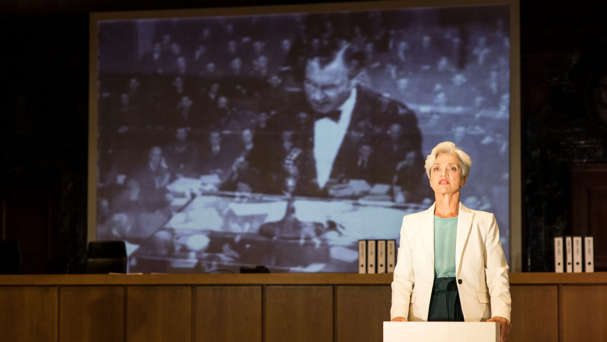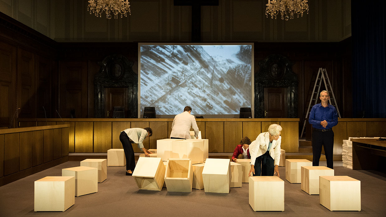 „Anna Klimovitskaya, Stephanie Leue, Adeline Schebesch, Nicolas Frederick Djuren und Janning Kahnert brauchen 25 Holzwürfel, Aktenordner und viele Blätter Papier, mehr nicht, um den Prozess selbst vorstellbar, den Weg ihrer eigenen Aneignung des Themas plastisch werden zu lassen. Es geht nicht darum, Göring zu spielen; es geht darum, was Göring im Prozess sagte. (…) Man sieht (u.a.) die KZ-Überlebende Marie-Claude Vaillant-Couturier bei ihrer Aussage; die Stimme leiht ihr Klimovitskaya, ein erschütternd beklemmender Moment.“