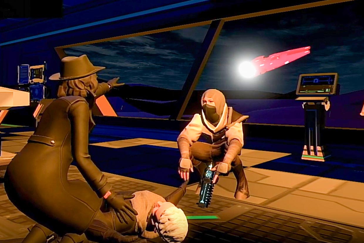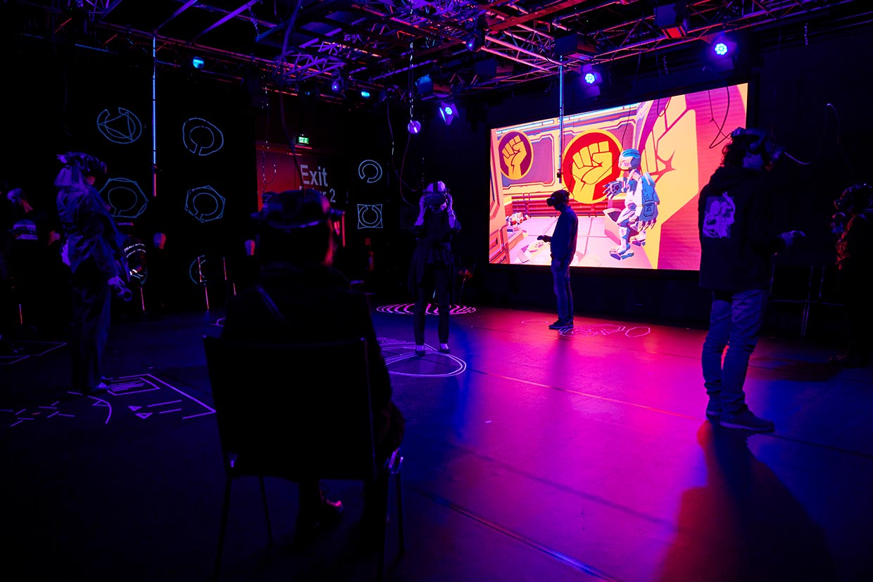 „Symmetrie“ ist ein SciFi-Noir-Krimi, der komplett in einer virtuellen Realität spielt. Im XRT mit VR-Brille auf dem Kopf, tauchen Sie ein in eine aufwendig gestaltete Welt. Die Schauspielerinnen sind dabei ebenfalls in der VR und spielen live vor Ihnen die Szenen. Aber „Symmetrie“ ist nicht nur ein Theaterstück, sondern auch ein kooperatives Rätselspiel und so sind Sie auf dem Weg zur Aufklärung des Falls immer wieder aufgerufen, gemeinsam mit den anderen Teilnehmerinnen Aufgaben zu lösen.