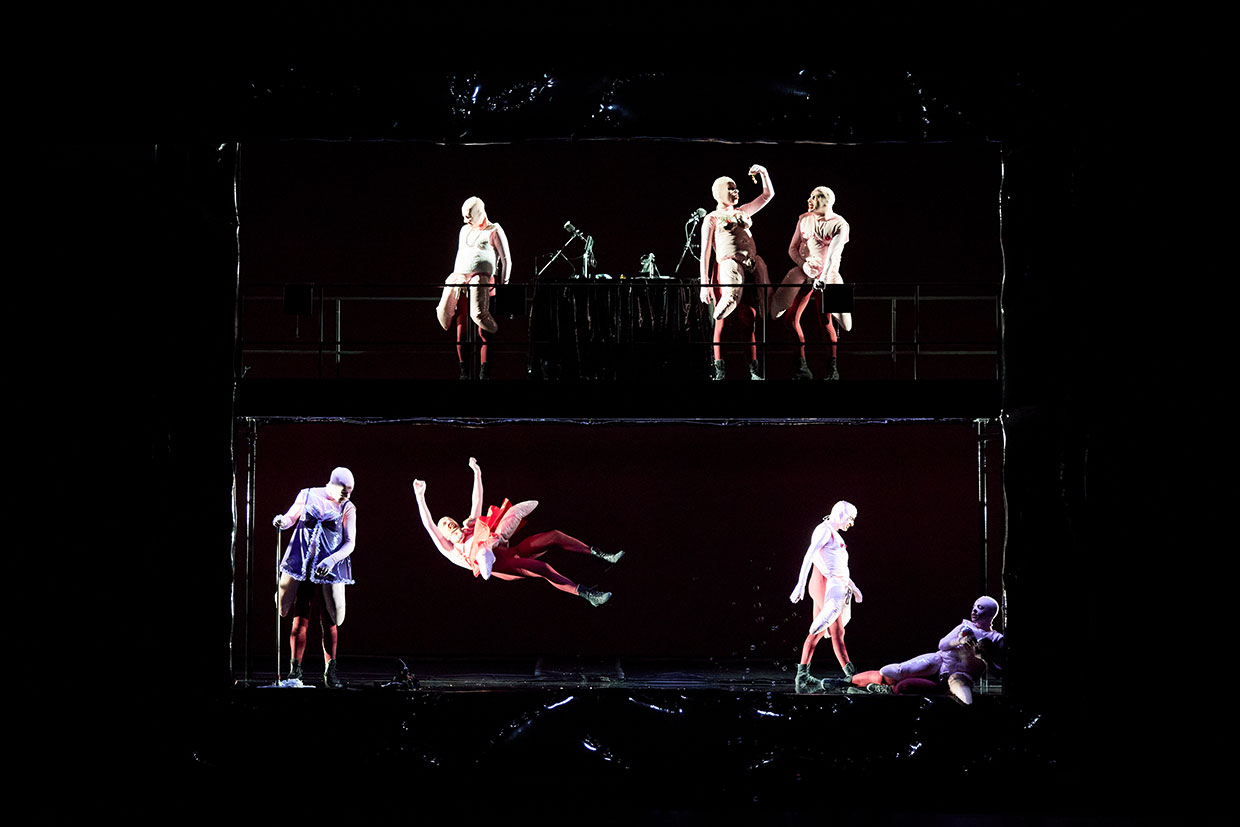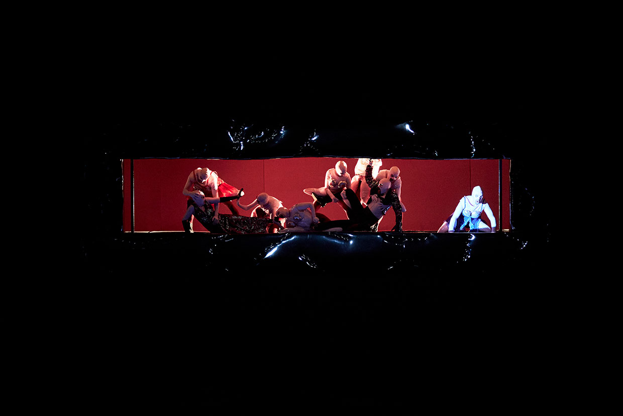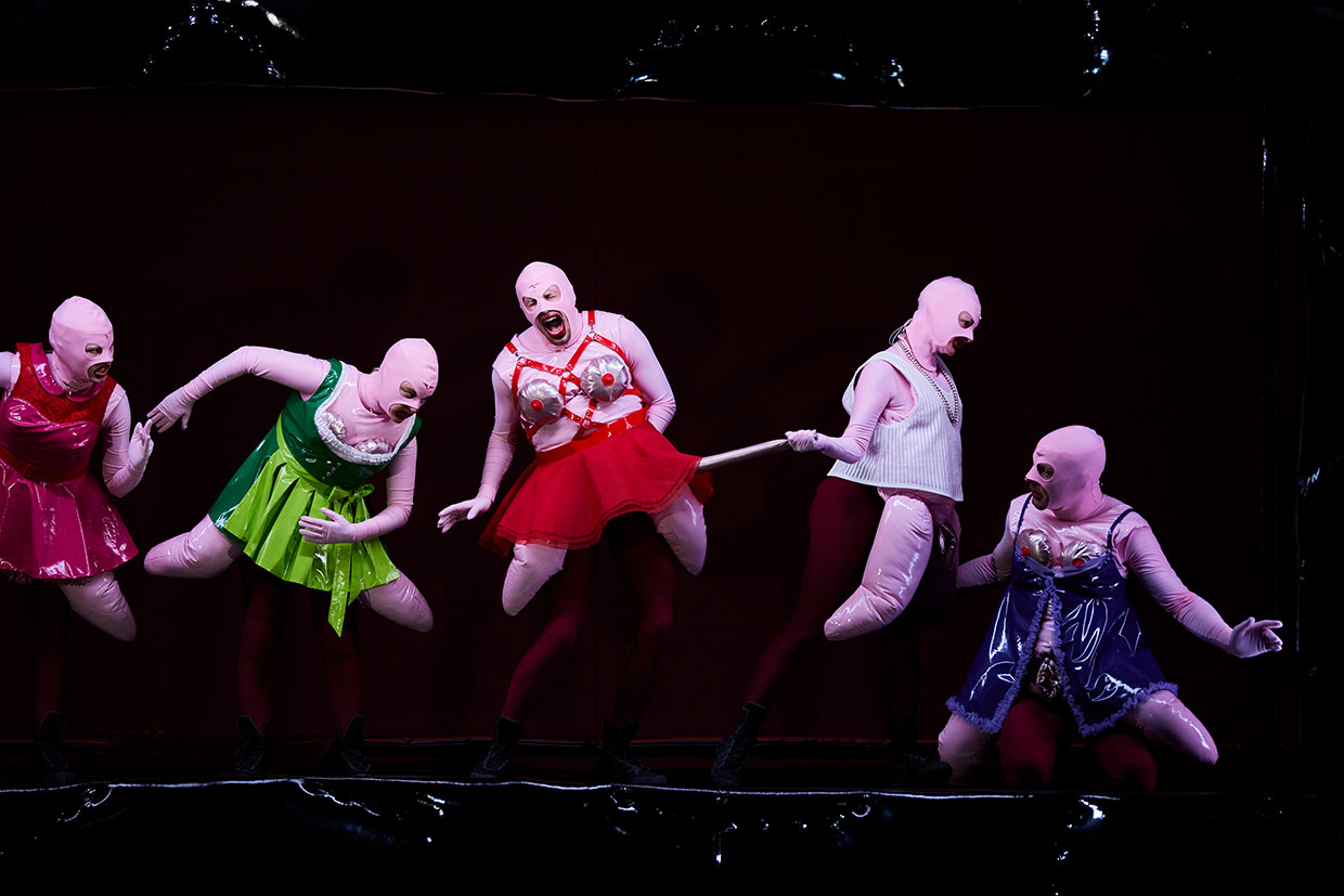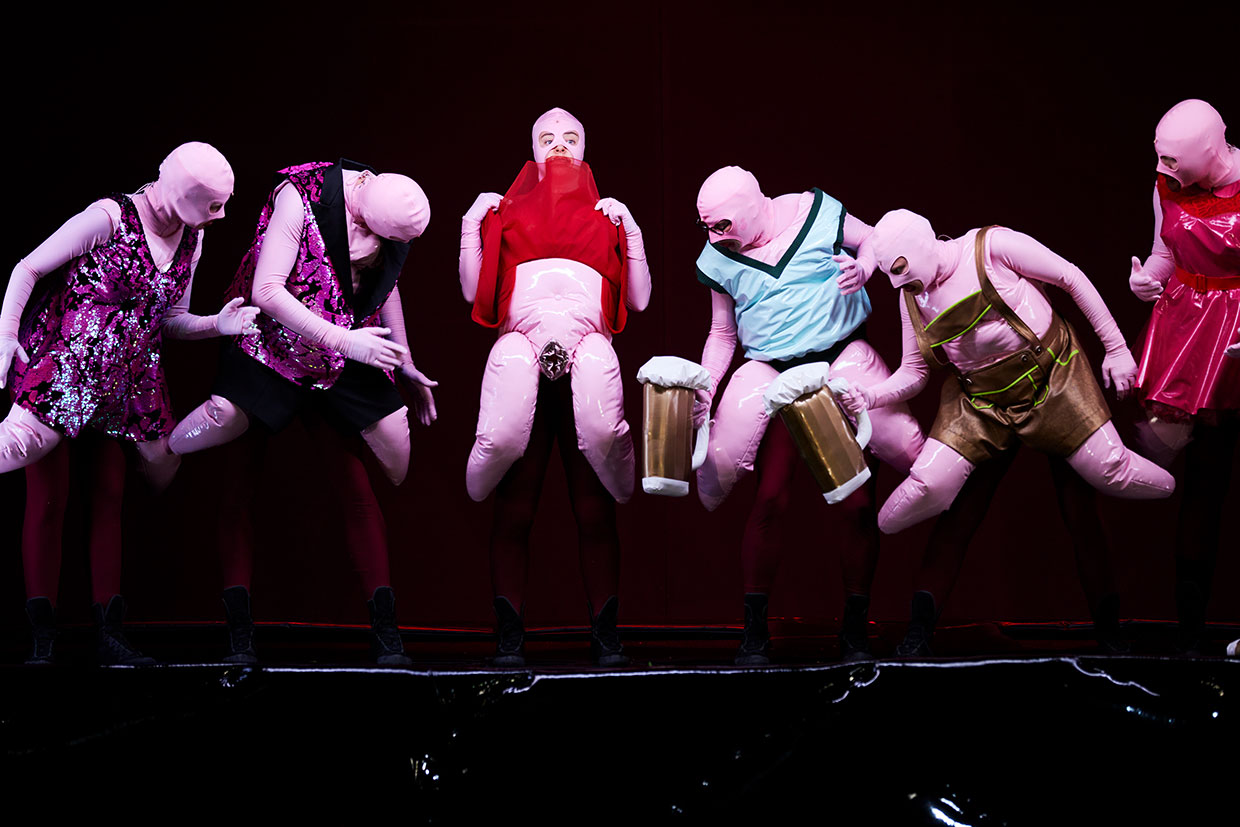 Rieke Süßkow, kürzlich von „Theater heute“ zur Nachwuchsregisseurin 2023 gekürt, inszeniert das Stück von Werner Schwab in einer abstrakten Ästhetik, die überhöht künstlich und zugleich sehr explizit ist.