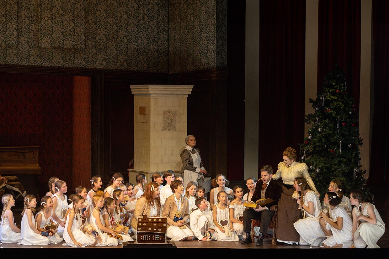 Ganze Generationen von kleinen und größeren Zuschauer*innen hatten durch Engelbert Humperdincks Märchenspiel ihre erste Begegnung mit dem Musiktheater. Pünktlich zur Weihnachtszeit ist das beliebte Werk wieder auf der Nürnberger Opernbühne zu sehen. Wald und Hexenhaus sind in der spannenden Inszenierung von Andreas Baesler die düsteren Kehrseiten des bürgerlichen Wohnzimmers in Humperdincks Zeit. „Mächtiger Beifall für einen in doppeltem Sinne wunderbaren Abend, der vielleicht zu schön ist, um wirklich real zu sein. Hingehen.“ (Nordbayerischer Kurier)