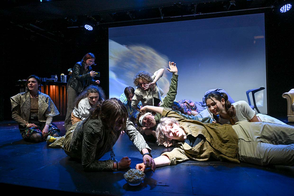 Das deutsch-tschechische Stück „tik | tak | boom“ entsteht als Kooperation zwischen dem Staatstheater Nürnberg und dem Čojč Theaternetzwerk Böhmen-Bayern als Jugendbegegnungsprojekt mit je sechs jungen Menschen aus Nürnberg und Prag unter der Leitung von Valentina Eimer und Linda Straub.