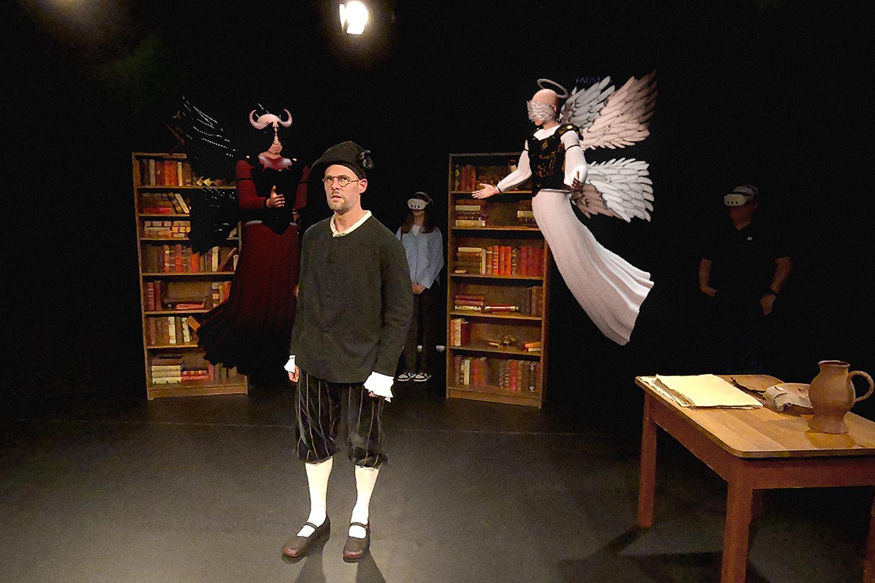 Regisseur und Digitaltheater-Experte David Gochfeld sucht mit „Doctor Faustus“ nach der (dunklen) Magie zwischen Bühne und Digitalität und entwickelt anhand von Christopher Marlowes Stoff einen Abend über die Versuchung von Macht und die Gier nach dem Unerreichbaren.