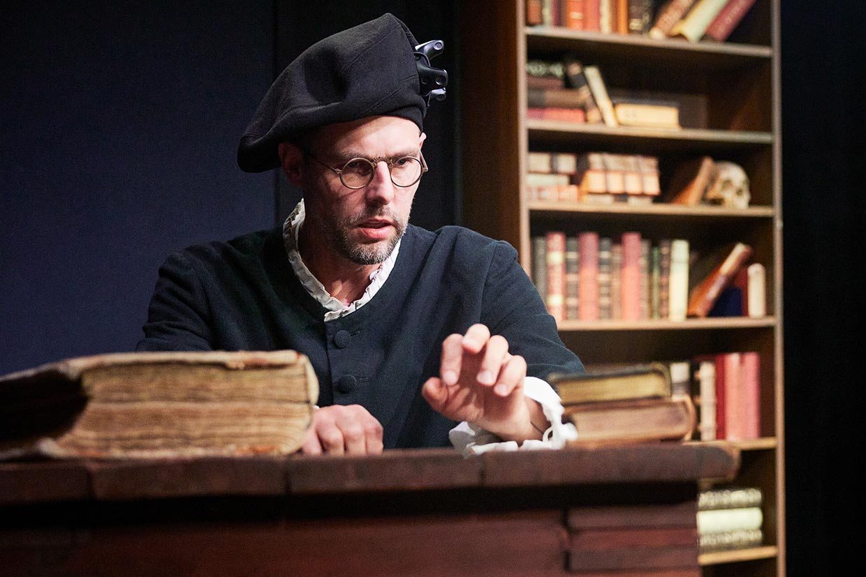 Faustus ist hungrig. Hungrig nach mehr. Mehr Wissen, mehr Welterfahrung und: mehr Macht. Getrieben von Ehrgeiz und dem unstillbaren Drang nach der Erfüllung allem (Un-)Wünschbaren, taucht Dr. Faustus in die Welt der dunklen Magie ab. Mephistophilis erscheint, schlägt Faustus einen Handel vor. Der Deal: Faustus muss für die Magie seine Seele an den Teufel verkaufen. Wer hier die „Gretchenfrage“ und ein Streben (und Irren?) nach Vollkommenheit erwartet, geht leer aus. Marlowe’s „Doctor Faustus“ ist ironischer – und gleichzeitig auch menschlicher.