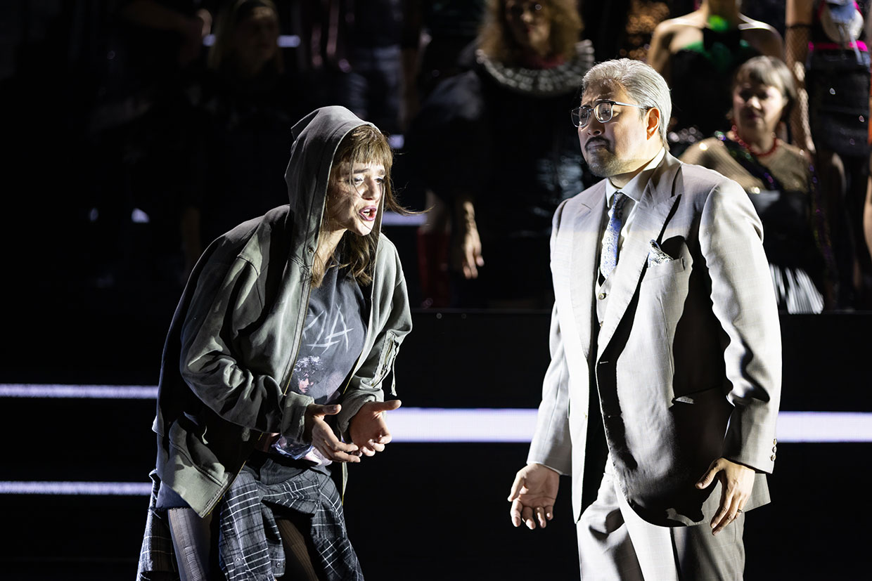 „Ilaria Lanzinos radikale Neuinszenierung von Verdis Opernklassiker lässt aufmerken. (…) Besonders hervorzuheben ist Sangmin Lee als Vater Germont: Mit baritonalem Glanz und großer Empathie verleiht er seiner herzlos handelnden Figur Mitgefühl. (…) Die Differenziertheit in den Figurenhaltungen und in der musikalischen Gestaltung macht diese Inszenierung besonders. (…) Ilaria Lanzinos ‚La Traviata‘ ist kein ästhetisches Experiment, sondern ein scharfer, schmerzlicher Kommentar zu unserer Gegenwart: eine Oper über Gewalt, Heuchelei und digitale Kälte.“