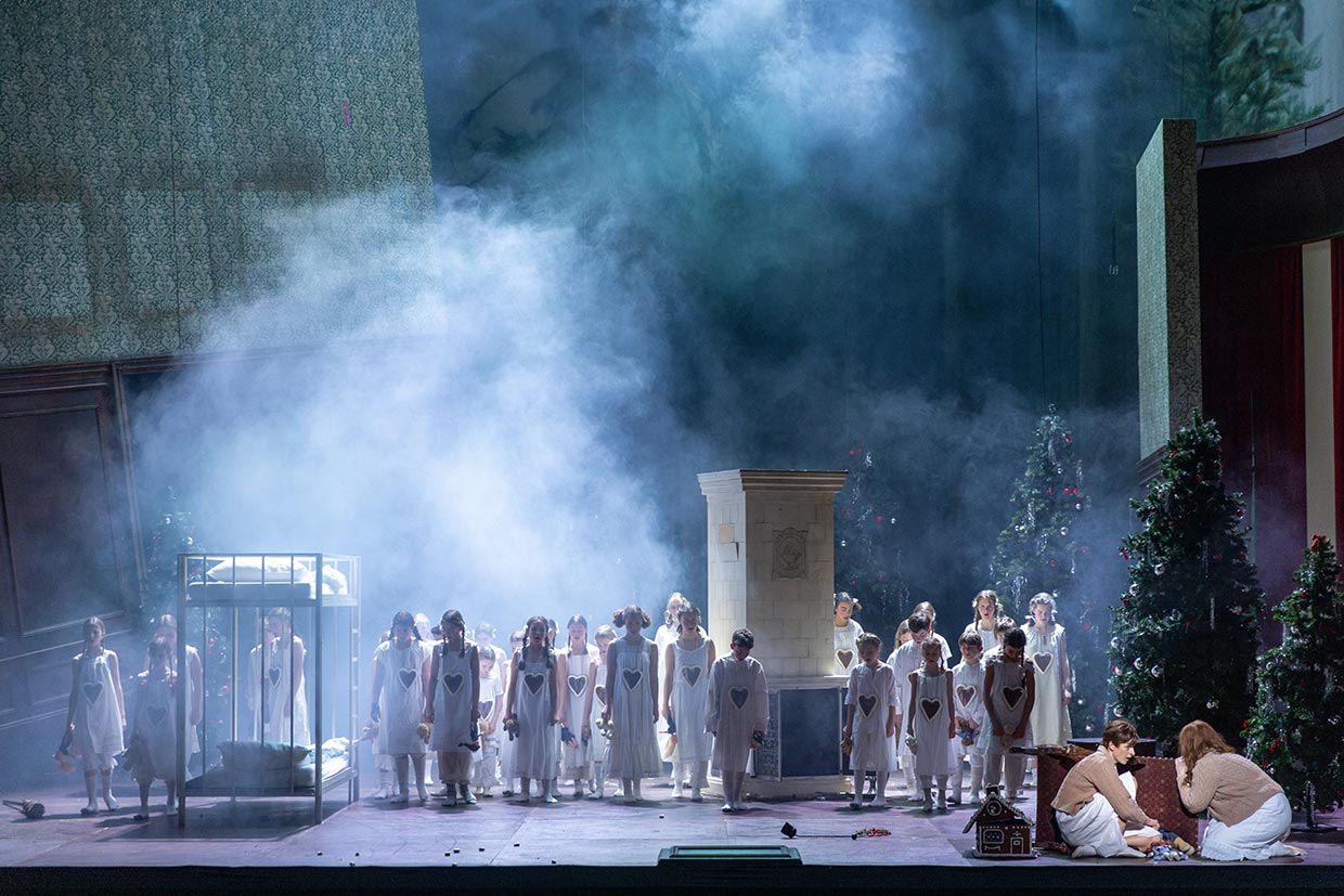 Pünktlich zum 1. Advent wird „Hänsel und Gretel“ auch am Staatstheater Nürnberg wieder aufgenommen. Regisseur Andreas Baesler versetzt das Märchen in einen bürgerlichen Salon des 19. Jahrhunderts, ohne dabei den Kern der Handlung zu verletzen. Eine spannende Inszenierung für Kinder und Erwachsene gleichermaßen: „Wie man Märchen und Moderne, Traum und Wirklichkeit zu einem intelligenten wie bewegenden Schau- und Hörstück erster Güte verbindet, das keinen Moment lang im Widerspruch zum Text und zur Musik steht: die Nürnberger machen es wieder vor“, war nach der Premiere im Nordbayerischen Kurier zu lesen. „Mächtiger Beifall für einen in doppeltem Sinne wunderbaren Abend, der vielleicht zu schön ist, um wirklich real zu sein. Hingehen.“