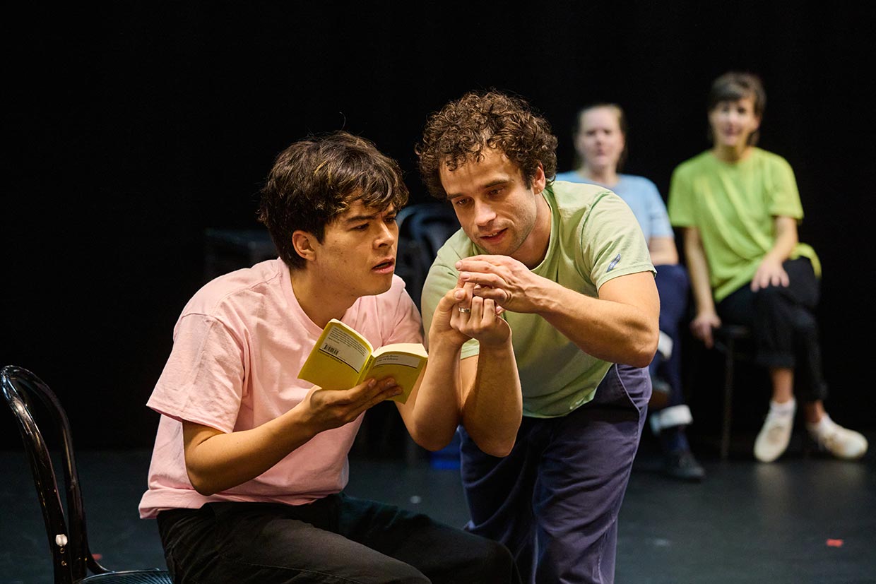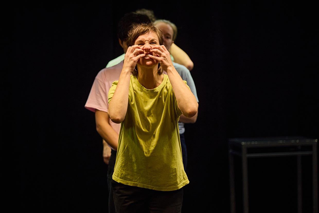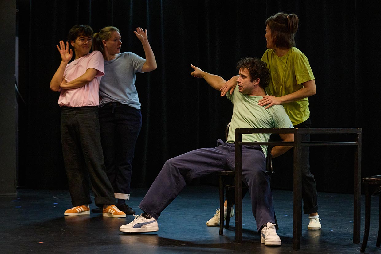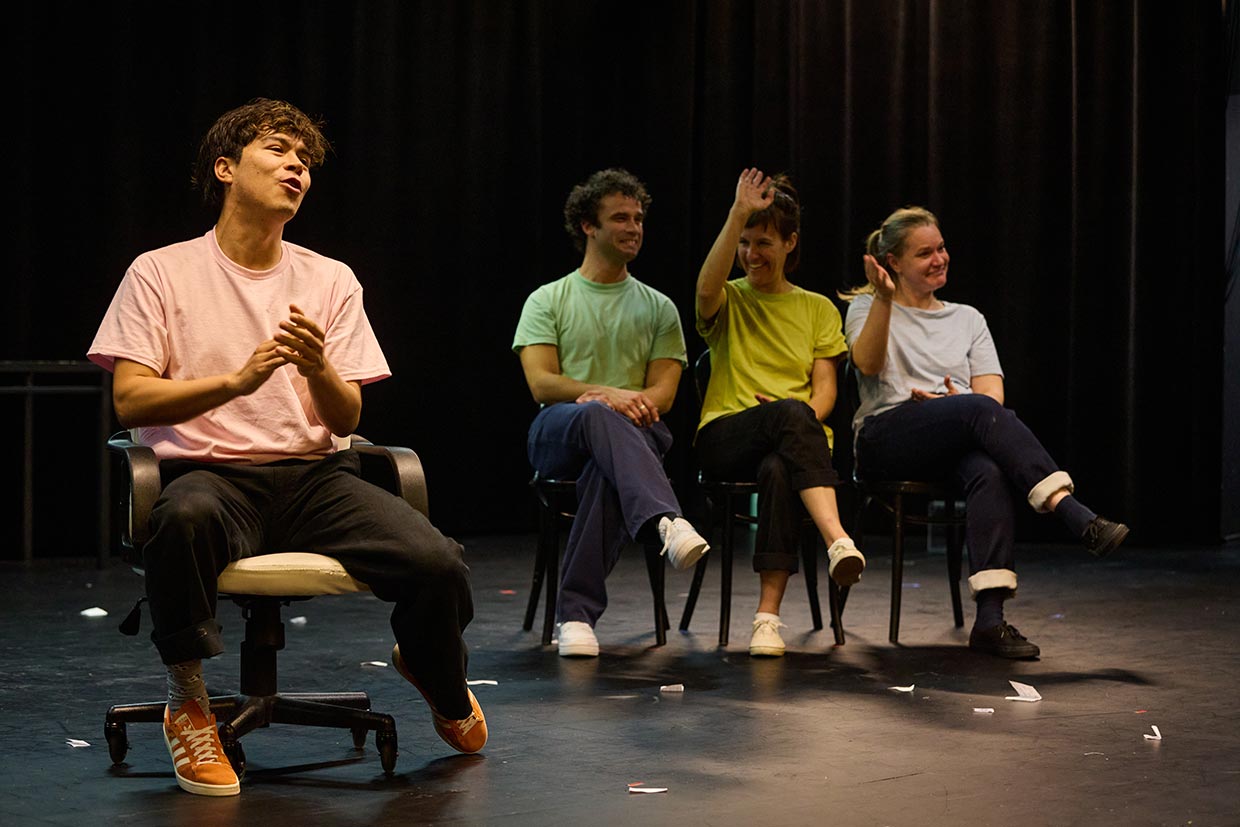 Yet what is it that makes a good theatre performance? Peter Brook said, “A person walks across a stage and another person watches.” We want to give that a shot. We’ll do away with all the bothersome accessories like a set narrative, a rehearsed plot, complicated props and costly set design. What remains is a group of actors who craft new stories and situations every evening, sometimes with audience participation, out of the full breadth of their experience and training so that they can add colour and vibrancy to the Kammerspiele stage. An unforgettable performance, spontaneous, entertaining, uproariously funny – and entirely unlike any other production in our repertoire.