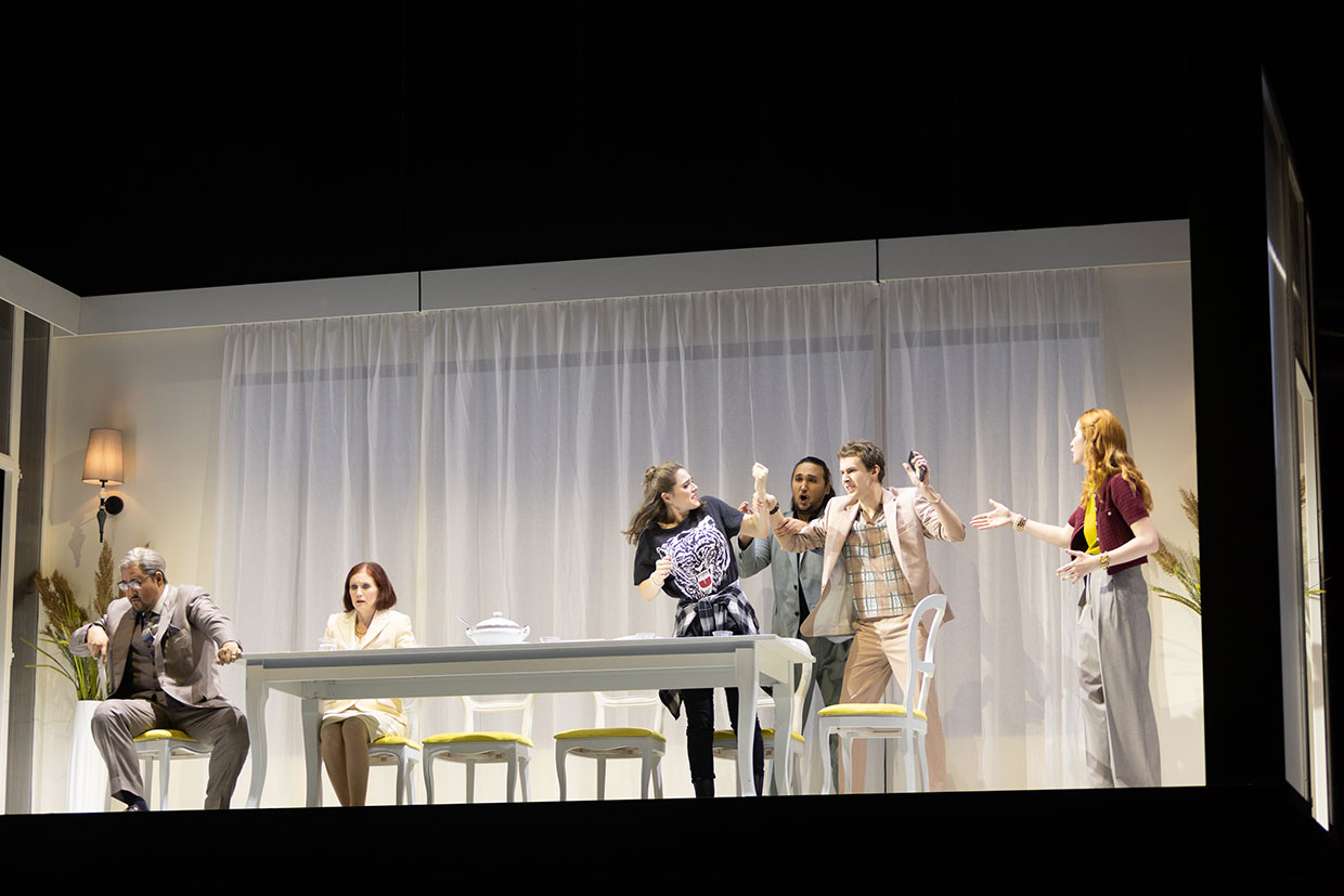 „Ilaria Lanzinos radikale Neuinszenierung von Verdis Opernklassiker lässt aufmerken. (…) Besonders hervorzuheben ist Sangmin Lee als Vater Germont: Mit baritonalem Glanz und großer Empathie verleiht er seiner herzlos handelnden Figur Mitgefühl. (…) Die Differenziertheit in den Figurenhaltungen und in der musikalischen Gestaltung macht diese Inszenierung besonders. (…) Ilaria Lanzinos ‚La Traviata‘ ist kein ästhetisches Experiment, sondern ein scharfer, schmerzlicher Kommentar zu unserer Gegenwart: eine Oper über Gewalt, Heuchelei und digitale Kälte.“