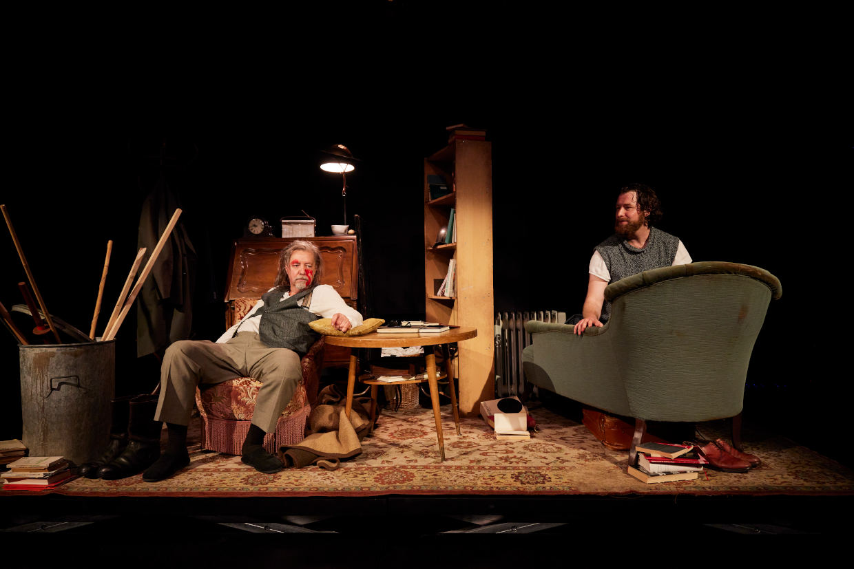 In seinem Regiedebüt entwirft Ensemblemitglied Janning Kahnert mit Kammerschauspieler Thomas Nunner und Maximilian Pulst, der mit dieser Produktion ins Nürnberger Ensemble zurückkehrt, eine spielerische Welt. Seine Inszenierung untersucht heutige Formen von Weltflucht, Wahrnehmungen von Realität und welchen Einfluss das Erzählen darauf hat.