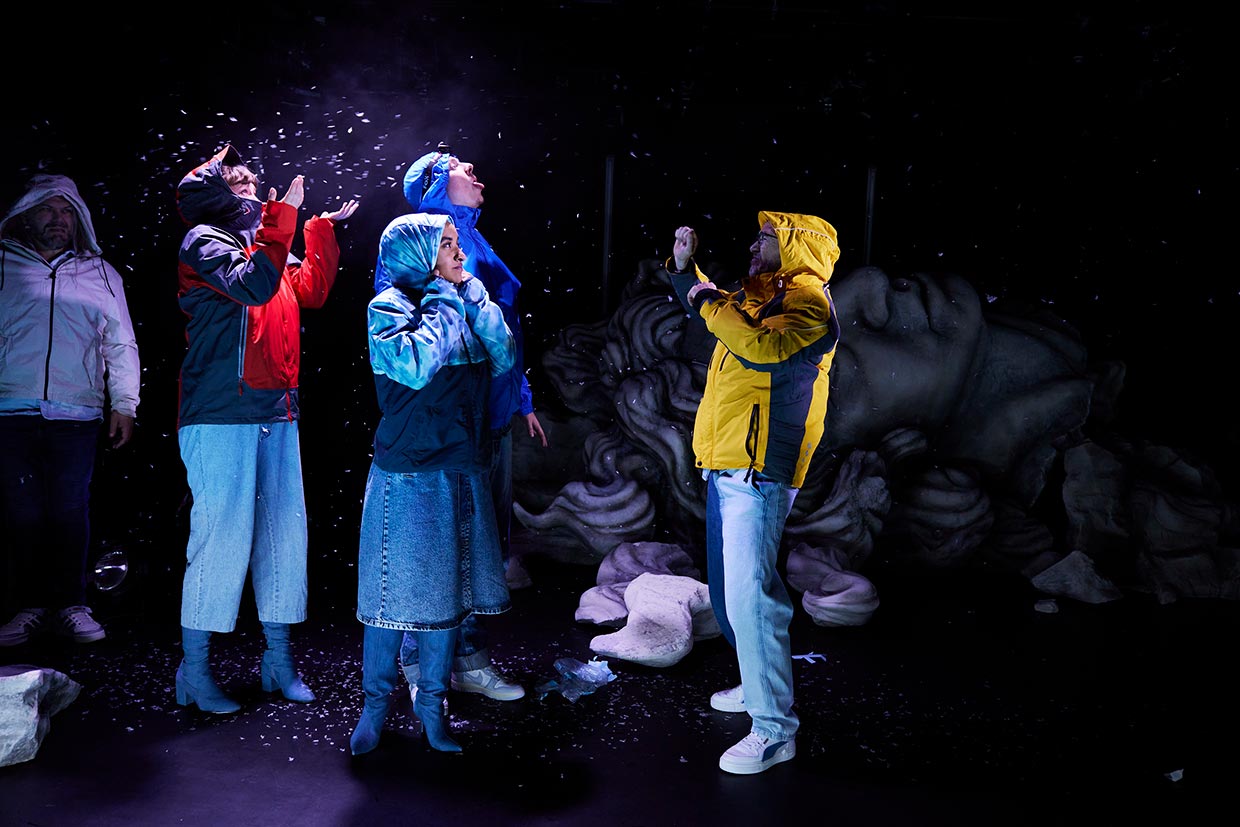Können wir noch einmal von vorne anfangen? Das fragt sich Gaia, Urmutter und Erde selbst, aus gegebenem Anlass. An ihrer letzten Kreation, den Leuten, hat sie das Interesse verloren. Auch Zeus, Mythos und Prometheus versuchen sich an der Herstellung von Leuten, sind aber ebenso wie Gaia unzufrieden mit dem Resultat. Man lässt das Projekt also liegen, um Jenga zu spielen. Als die Götter abgelenkt sind, vermehren sich die Leute unbemerkt, aus hunderten werden tausende und dann Millionen. Nach einiger Zeit haben sie Gaias Schöpfung völlig kaputtgemacht. Mythos entscheidet, dass die Leute wegmüssen, allesamt. Aber die finden immer wieder einen Vorwand, ihre Auslöschung aufzuschieben.