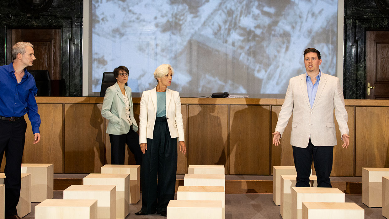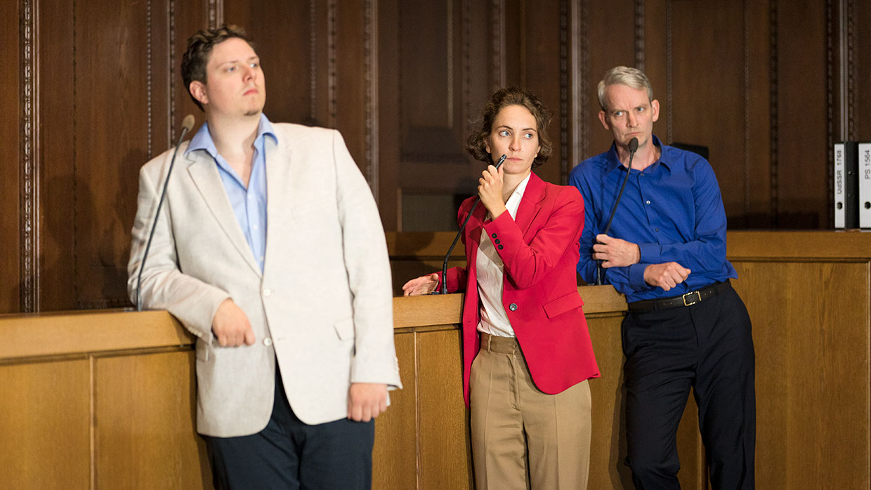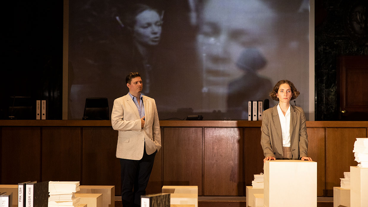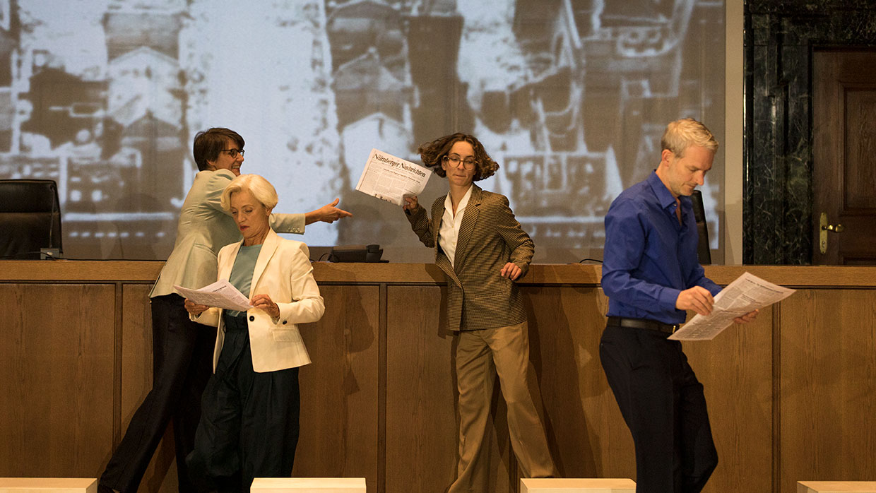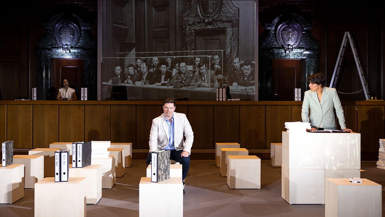 Am 30. September 2021 ist es 75 Jahre her, dass im Nürnberger Justizpalast die Urteile im ersten von dreizehn Prozessen gegen führende Nationalsozialisten verlesen wurden. Nicht nur Göring und die Hauptverantwortlichen, auch Ärzte, Industrielle, Juristen – ein ganzes System stand vor Gericht. Die Täter des Nationalsozialismus mussten sich hier in Nürnberg unter den Augen der Weltöffentlichkeit vor einem internationalen Gericht für „Verbrechen gegen die Menschlichkeit“ verantworten. Ein bis dahin einzigartiges Ereignis. Im Saal 600, dem historischen Ort der Prozesse, widmet sich nun eines der renommiertesten Dokumentartheater-Teams der Geburtsstunde des Völkerstrafrechts. Ein Theaterabend als dokumentarische Spurensuche.
