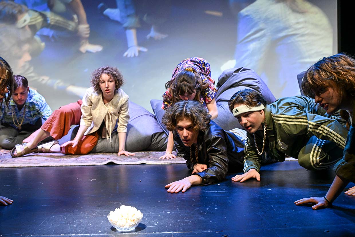 Das deutsch-tschechische Stück „tik | tak | boom“ entsteht als Kooperation zwischen dem Staatstheater Nürnberg und dem Čojč Theaternetzwerk Böhmen-Bayern als Jugendbegegnungsprojekt mit je sechs jungen Menschen aus Nürnberg und Prag unter der Leitung von Valentina Eimer und Linda Straub.