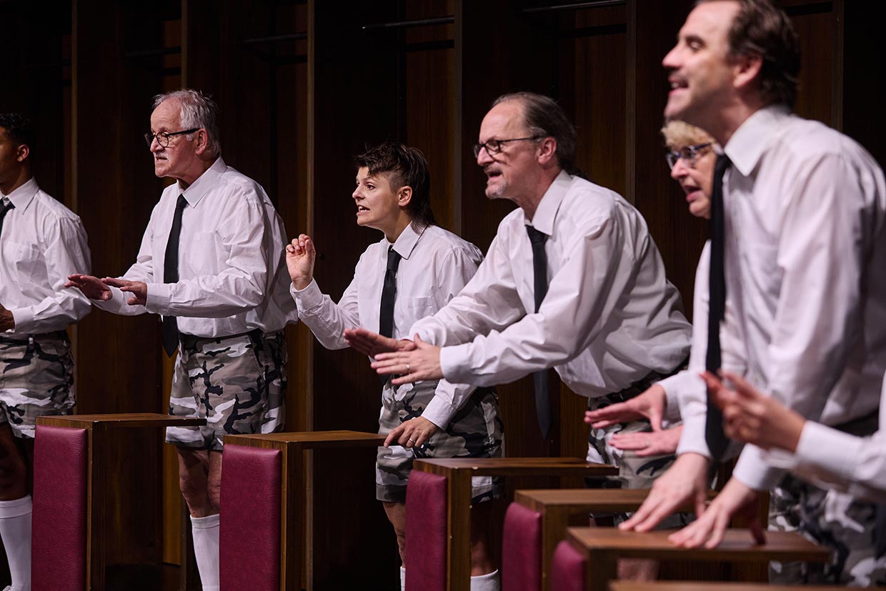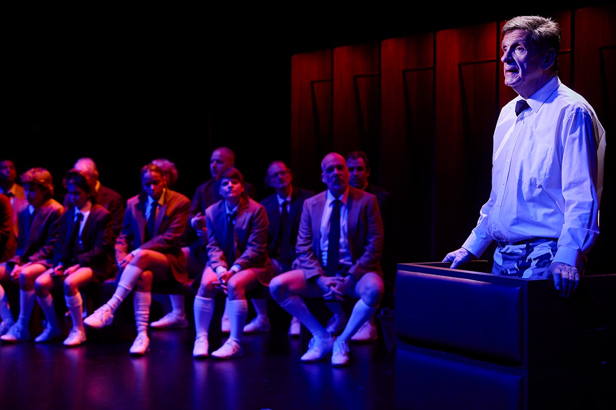 Salomons Geschichte ist eine von 142 Biografien jüdischer Mitglieder, denen die Publikation „Heulen mit den Wölfen“ von Bernd Siegler gewidmet ist. Vor diesem Hintergrund entsteht in der Regie von Ron Zimmering ein Kaleidoskop aktueller Fragestellungen: Warum ist mein Verein mein Verein? Wie und weshalb wirkt Fußball identitätsstiftend und damit gleichermaßen ausschließend? Denn längst wirkt Fußball in den Diskursen, die er anstößt, weit über das Sportliche hinaus: Wer welche Nationalität wieso hat, die Hymne mitsingt, homosexuell ist, in der Fankurve stehen darf, usw., wird öffentlich diskutiert.
